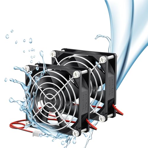 GDSTIMEの2PCS IP67防水ファンは、80mmx25mmのサイズで、12V DC、2800RPMの性能を持つ冷却ファンです。2PIN接続に対応し、耐水性があり、多様な用途に最適です。