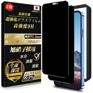 【覗き見防止 2枚】MAYtobe ガラスフィルム iPhone 12 Pro max 用 覗き見防止 日本製旭硝子 全面保護 強化ガラス 硬度9H 超耐久 極薄 プライバシー保護 99%高透過率 3D Touch対応 液晶保護フィルム 耐衝撃 気泡なし 指紋防止 飛散防止 撥水撥油 自動吸着 貼り付け簡単 アイフォン 12 Pro max 対応 保護フィルム のぞき見防止