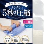 抗菌防臭機能付きで、下着専用の透けない袋が付いています。最大70%圧縮でき、簡単に5秒で圧縮可能。旅行や出張、衣替えに最適な独自の密閉素材です。