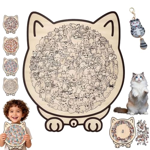 135ピースの猫型モランディカラー木製ジグソーパズル。愛らしい猫のアウトラインで、額装可能。動物デザインの装飾としても最適なホームデコレーション。