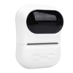 Bluetooth接続のジェネリックラベルメーカー。中小企業向けのポータブルサーマルプリンターで、住所、バーコード、ロゴなど印刷可能。白色のデザインで、郵送や衣類ステッカーにも対応。