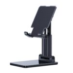 折りたたみ式デスクトップタブレットホルダー。安定したベースと調整可能な角度・高さ。スマートフォン、タブレット、電子書籍リーダー対応。カラー:ブラック/ホワイト。
