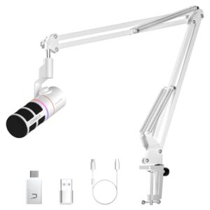 【COMICA 2025革新登場】ダイナミックマイク USB/XLRデジタルとアナログデュアル出力 ゲーミングマイク 単一指向性 ブームアーム付き RGBライティング ノイズ軽減 ライブ配信 ゲーム実況 在宅勤務 ポッドキャスト ストリーミング ナレーション録音に最適 PC/PS4/PS5/サウンドカード/オーディオミキサー対応 EJoy D10 Pro(白)