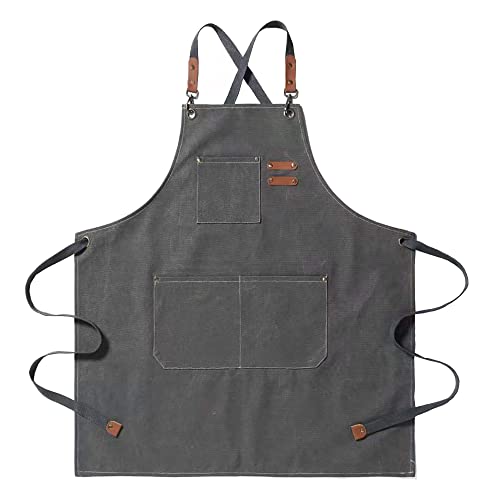 [GENMAI SOEASY] エプロン 作業エプロン アウトドア メンズ キャンプ ガーデニング 作業 DIY 職人 フリーサイズ ポケット付き 男女兼用 シェフ ワークエプロン 前掛け 厚手 綿 キャンバス 軽量 園芸 業務 料理用 グレー