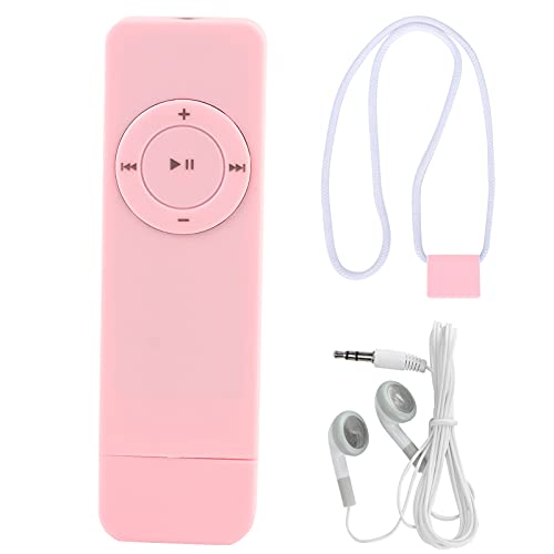 3.5mmイヤホン付きの32GB対応MP3プレーヤー。10時間再生可能で、ランニングやスポーツに最適。ピンク色。