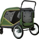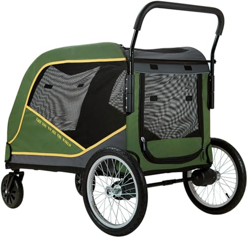 大型犬や多頭飼いに最適なペットキャリー。四輪でラクラク移動、介護用にも対応。荷重は80Kgまで耐え、緑色のデザインが魅力的です。