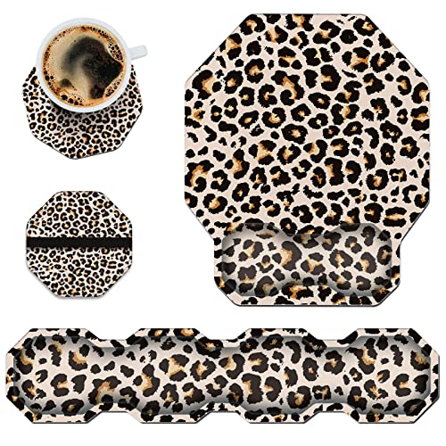 手首サポートジェル付き八角形マウスパッド。滑り止めPUベース、コースター&スクリーンクリーニングパッド付きで、オフィスや家庭に最適。ヒョウの皮膚デザインが魅力。
