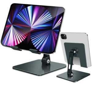 タブレット/iPad用 高さ角度調整可能 アルミ製スタンド 折りたたみ式 4-12.9インチ対応 縦置き横置き両用 滑り止めパッド付き 落下防止設計 携帯便利 軽量安定性 (グレー)