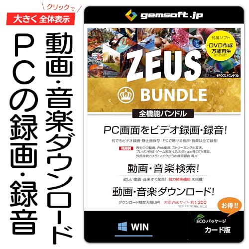 ZEUS Bundleは、画面録画、音声録音、動画や音楽のダウンロードができる万能ソフトです。カード版でWindowsに対応しています。