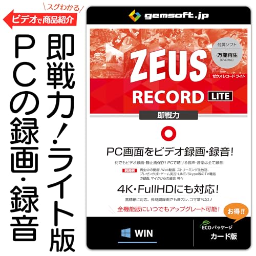 ZEUS RECORD LITEは、PC画面を簡単にビデオ録画できる基本機能版のソフトウェアです。カード版でWindowsに対応しており、手軽に録画を始められます。