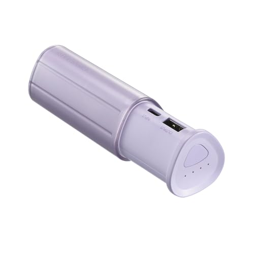 グリーンハウス スティック型モバイルバッテリー5000mA。2.1A出力対応、USBポートを守るスライドカバー付きで、軽量・小型のパープルモデル(GH-BTY50E-PU)。