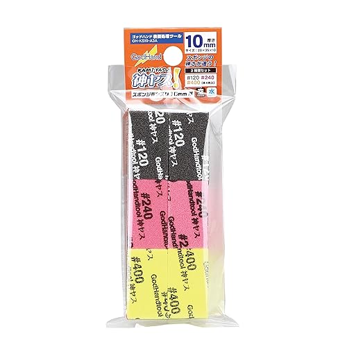 ゴッドハンド神ヤス! 10mm厚の3種類セットAは、仕上げ用のサンディングペーパーです。#120、#240、#400のグリットが含まれ、様々な仕上げ作業に対応。高品質で耐久性に優れています。