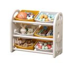 JUELREOUおもちゃ収納ラックは、幅77×奥行32×高さ66cmの大容量で、子供のおもちゃを効果的に分類収納できます。バスケット付きで可愛いデザイン、組み立て簡単なアイテムです。