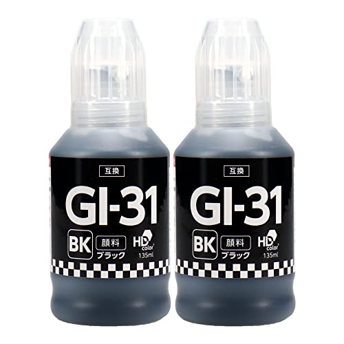 キヤノン用ギガタンクGI-31顔料ブラック2本セット。互換インクボトルで、純正品と同容量。対応機種:G1330/G3360/G3370/G3390。プリントヘッドに優しく、寿命を縮めません。