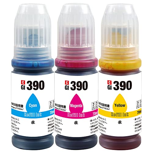 Canon GI-390 (C/M/Y) 互換インクボトル3色セット。最新モデルで、純正インクと併用可能。対応機種はG3310/G1310。STAR JET製。