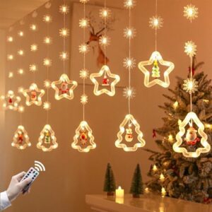 クリスマスイルミネーション 飾り USB充電式 クリスマスツリーライト リモコン付 8種類の照明 LEDライト おしゃれ 雰囲気満々 防水防塵 省エネ 省エネ クリスマス用 電飾 季節用品 室内 部屋 庭 デコレーション 誕生日 (星形+ツリー形+雪の結晶)