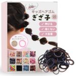 ヘアゴムぎざ子キッズ用、100本セットの髪ゴムです。サイズは3cmで、ブラック系のカラーが揃っています。子供たちの髪型にピッタリ。