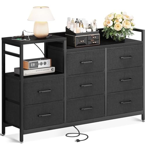 KKLのビンテージ+グレーの収納タンスは、幅132×奥行30×高さ88cmで、3段8杯の引き出しが特徴。衣類や小物を整理しやすく、転倒防止設計で安定感があります。リビングにも最適な布製の衣装ケースです。