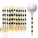 GLOWZENのゴルフティーは、エコで耐久性のある天然素材を使用。20個入りのバンブーゴルフスパイクは、スタイリッシュなブラックストライプデザインが特徴。