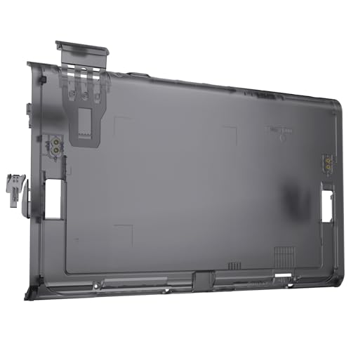 eXtremeRateのNintendo Switch 2対応交換式DIYリアバックプレート。クリア系のスイッチ2用カスタム背面シェルケース(キックスタンドなし)。クリアスレートブラックデザイン。