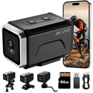 CLYZSTU 4Kアクションカメラ ビデオカメラ WiFi スマホ連携 64GBカード付属 125°広角 8時間連続録画 静止画撮影 HDR搭載で夜間録画可能 ループ録画 GPS IP65防水防塵 バイク自転車用 配線不要 Vlog 旅行 アウトドア 証拠撮影 日本語説明書
