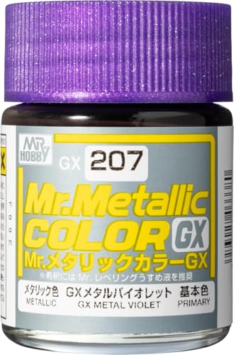 Mr.カラー GX207 GXメタルバイオレットは、18mlの塗料で、金属的な光沢を持つエレガントな紫色です。模型やフィギュアの塗装に最適で、速乾性と優れた密着力を誇ります。