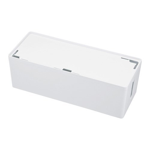 サンワサプライのアウトレット品、ケーブル&タップ収納ボックス Lサイズ(ホワイト CB-BOXP3WN2)。箱にキズ、汚れあり。整理整頓がしやすく、デスク周りをスッキリ整えます。