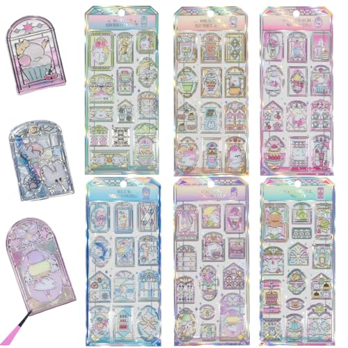 立体シール ステンドグラス風 立体透明 デコレーションステッカー うるつやシール 3D エンボス加工 ねこ うさぎ 食べ物 浮き彫り キラキラ ごほうびステッカー 携帯電話飾り DIY用 窓 手帳 水筒 ノート パソコン スマホケース スクラップブック アルバム飾り用 贈り物 貼るだけ簡単 (全6枚セット) [並行輸入品]の製品情報