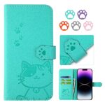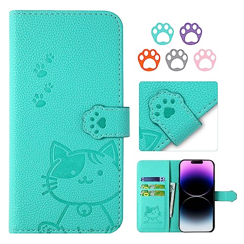 YIMASE Google Pixel 8A用手帳型ケース。すべてのボタンや機能に簡単アクセス。おしゃれな猫柄、グリーン色を採用。