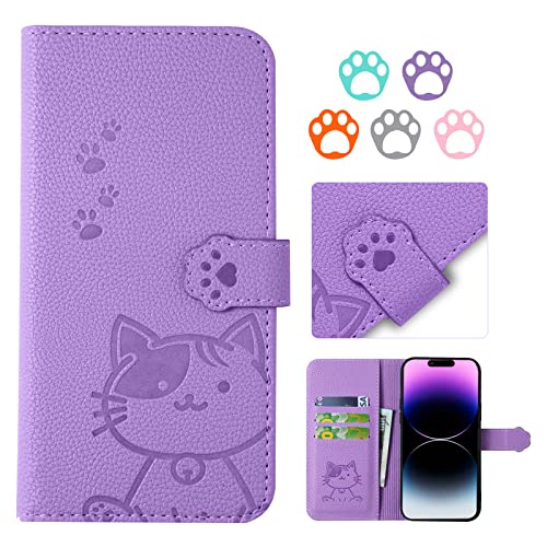 YIMASEのGoogle Pixel 8A対応手帳型ケース。すべてのコントロールに簡単アクセス。かわいい猫柄、6.1インチ、パープル。