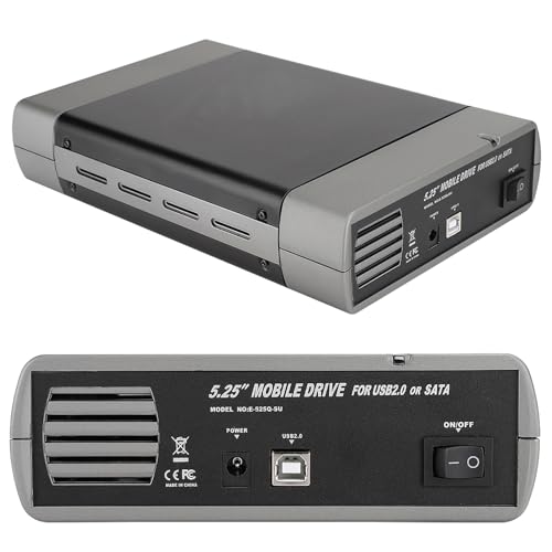 5.25インチ光学ドライブエンクロージャは、USB 2.0対応の外付けDVDドライブ。XP/7/8/10およびOS 9.0と互換性あり。米国プラグ仕様のポータブルコンピュータアクセサリです。