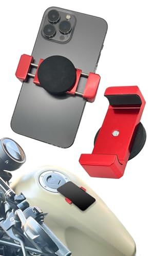 GOROPRIのバイク用スマホホルダーは、超強力マグネットで燃料タンクにワンタッチ取り付けが可能。メタリックレッドのデザインとPUレザー収納袋付きで、カメラアクセサリとしても活躍します。