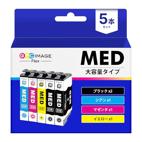 GPC Image Flex めだまやきインクは、エプソンEW-456A/EW-056A対応の4色パック + 黒5本セット。大容量で長期供給保証、印刷品質も優れています。新旧パッケージが混在して発送される場合あり。