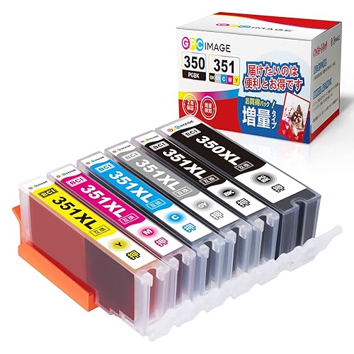 GPCのBCI-351XL/BCI-350XL互換インクカートリッジ6色セット。キャノン対応、大容量タイプ。残量表示機能付き、個包装、説明書付。MG・IX・IPシリーズ対応。