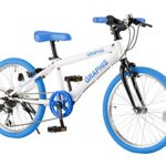 GRAPHISの20インチ子供用クロスバイク、6段変速機能付きでスキュワー式を採用。ジュニアサイクルとして設計され、ホワイト/ブルーのデザインが特徴。安全性と快適性を兼ね備えたキッズサイクルです。