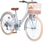 GRAPHIS GR-APRICOTは、22インチの子供用自転車で、シマノの6段変速機能を搭載。手元スイッチで操作できるLEDライト付きで、安全性も高い。カラーはライトブルーです。