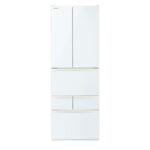 TOSHIBAの冷蔵庫GR-Y510FH(EW)は、幅65.0㎝、509Lの大容量フレンチドア型。野菜室は中央に配置され、使い勝手が良く、自動製氷機能も搭載。ガラスドアでスタイリッシュなデザインです。