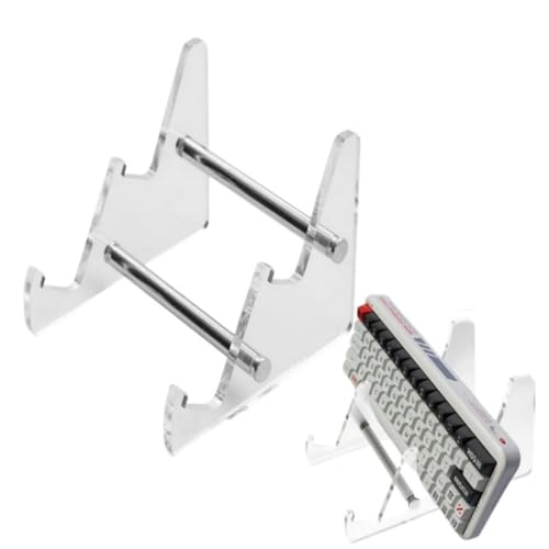 この2段キーボードスタンドは透明なアクリル製で、オフィスでのキーボードやタブレットの収納に最適です。コンパクトなデザインでスペースを有効活用できます。