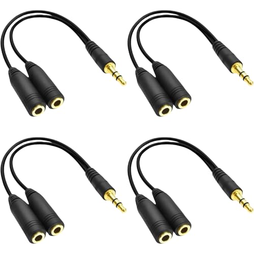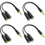 GRASSCALM イヤホン分岐ケーブルは通話可能で、3.5mmジャックを使った二股ケーブルです。スマホ、タブレットなどに対応し、パソコンやスピーカーにも使えます。長さは20cm、4本セットです。