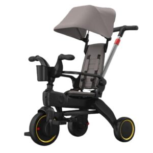 HOTGEEJP 子供三輪車 折りたたみ式 便利な旅行 一台四役 幼児用トライク6ヶ月から6歳まで使える ノーパンクタイヤ 手押し棒付き 調整可能 サンシェード お出かけ 乗用玩具 プレゼントに最適 (グレー)