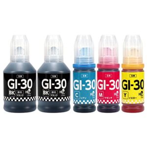 【インクのチップス】キヤノン(Canon)用 GI-30 GI-30-4CL 4色セット + 顔料ブラック1本 互換インクボトル 純正品と同容量 そのままプリンタに差し込んで使用可能 対応機種:G7030 G6030 G5030 セット内容:GI-30PGBK GI-30C GI-30M GI-30Y 商品コード:3384C001 3397C001 3398C001 3399C001