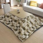 山善の折りたたみ家具調こたつセット。サイズ80×60cmで300Wの電力。リバーシブルのこたつ掛け布団(ギャベ柄ベージュ)付き。おしゃれで実用的。