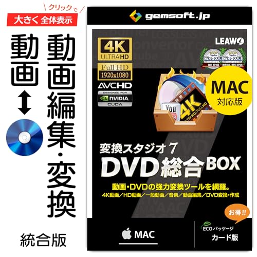 変換スタジオ7 DVD総合BOX Mac版は、DVD作成、DVD変換、動画変換に対応した製品です。Macユーザー向けの便利な機能が満載です。