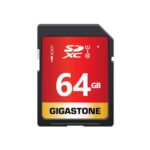GIGASTONEの64GB SDカードは、SDXC UHS-I U1 C10規格で80MB/sの高速記録が可能。フルHDビデオやデジタルカメラに最適です。5年保証、ミニケース付き。