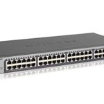 NETGEAR GS750Eは48ポートのギガビットスイッチングハブで、L2/L3機能を備え、トラフィック管理やQoSが可能です。管理が容易で、堅牢なセキュリティ機能を提供します。