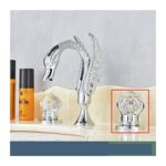 ゴールデンバスルームの洗面台用蛇口。エレガントなデザインで、スワン型とクリスタルハンドルが特徴。キッチンやバスルームにぴったりのミキサータップです。