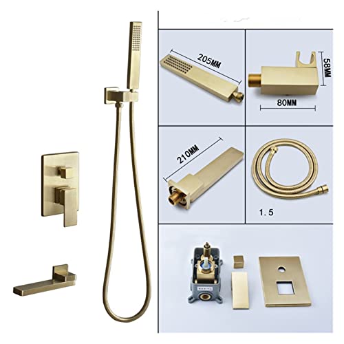 ブラックバスルームバスタブミキサータップは、ホット・コールドの設定が可能で、壁取り付け式。真鍮製、ブラシ仕上げのゴールド/クロムで高級感あり。