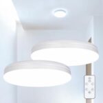 こちらのLEDシーリングライトは、2個セットの小型10Wで1000lmの明るさを提供します。工事不要で、4畳程度のスペースに適し、調光調色機能やリモコンも付属。薄型でコンパクトなデザインで、様々な部屋に最適です。
