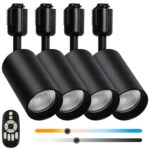 共同照明の4個セットダクトレール用スポットライト。100W相当・850LMの調光調色LED一体型。リモコン付きで角度調節可能。リビング、廊下、寝室に最適なブラックデザイン。