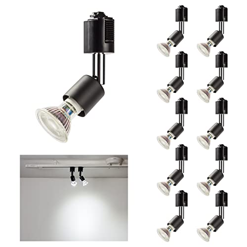 共同照明の10個セットダクトレールスポットライトは、E11の50W相当の昼光色ハロゲンランプが付属しています。天井照明やライティングレール用、黒色のデザインで、適格請求書発行も可能です。